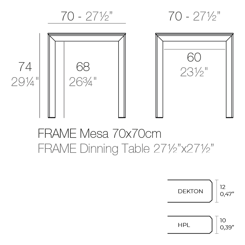 FRAME ALUMINIUM TABLE 70X70X74