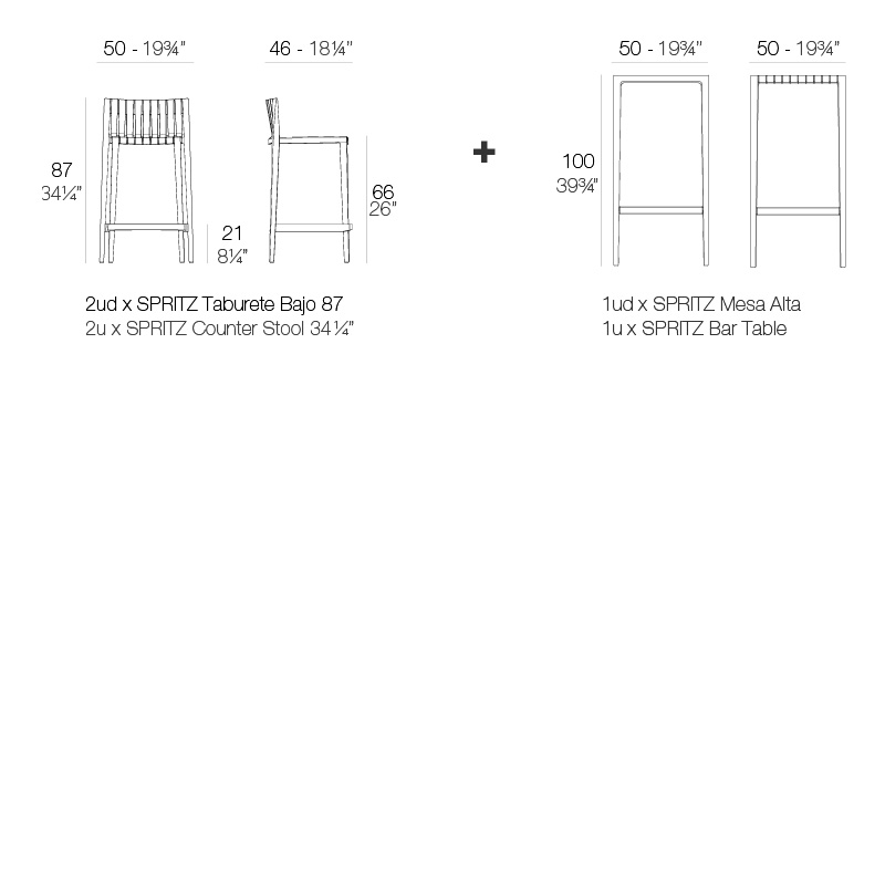 SPRITZ SET OF 2 BAR STOOL+1 BAR TABLE H87CM