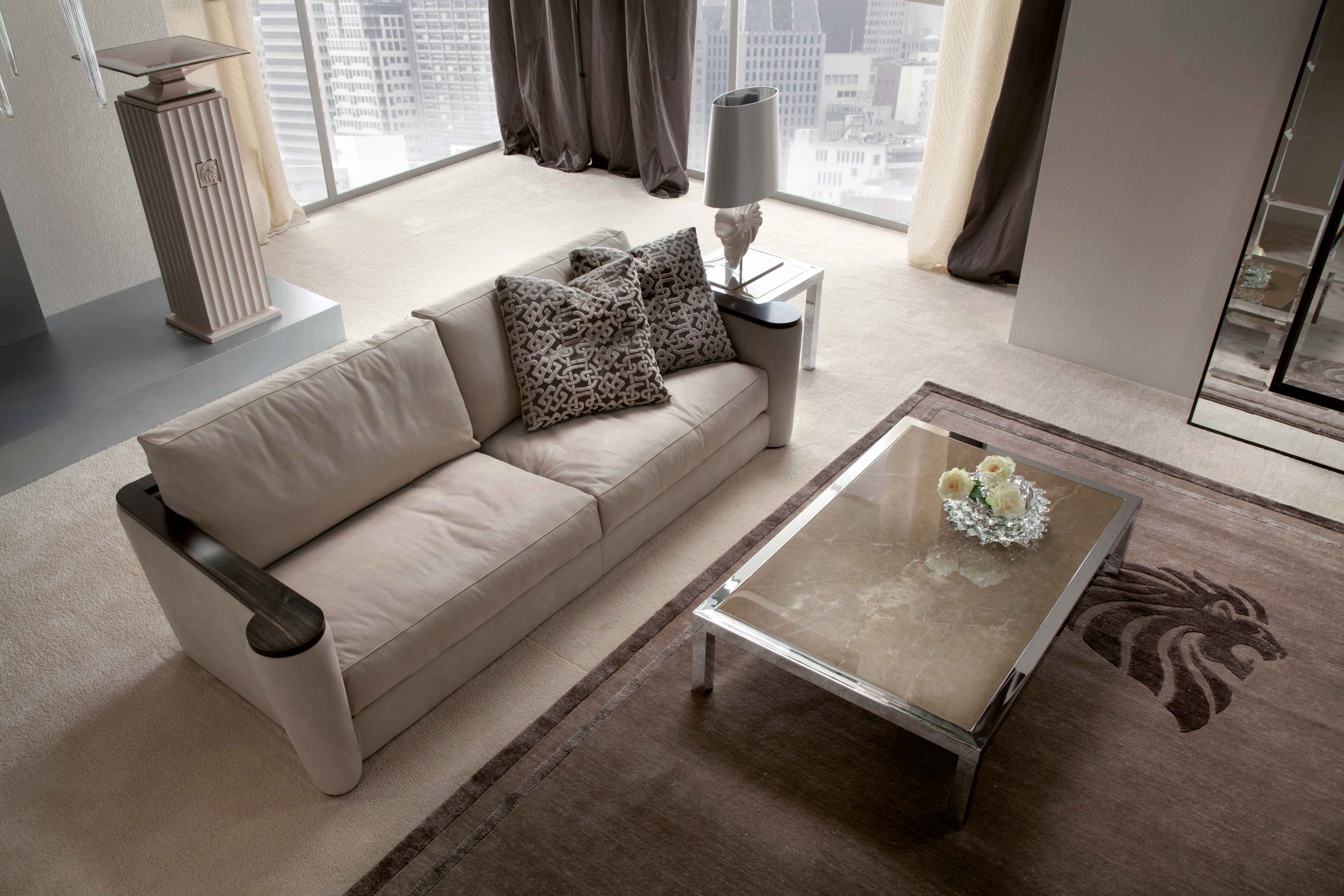 矩形鸡尾酒桌,镀铬不锈钢和大理石顶部,具有高光泽聚酯饰面。顶部为大理石。
