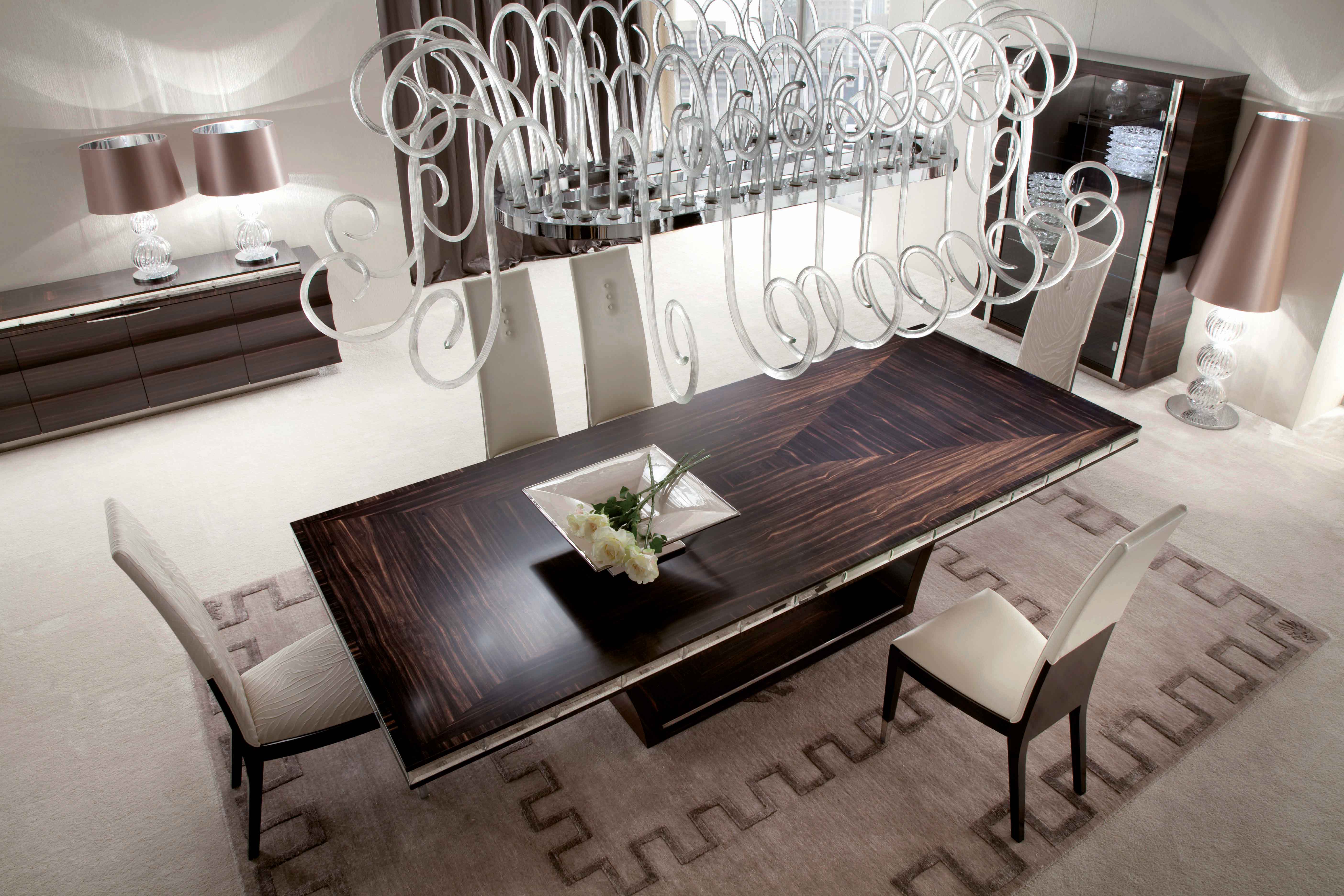 矩形桌子在望加锡乌木贴面在缎面完成。固定顶部,在斜面镜的边缘插入。