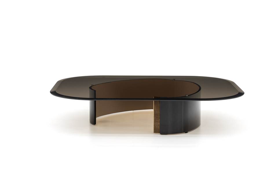 底座的形状透过优雅的顶部可见,采用圆形,方形和矩形古铜色玻璃,边缘处有精致的倒角。