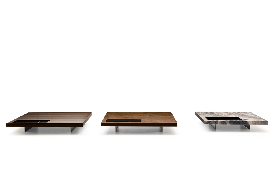 它们都采用哑光漆面的桉树木和哑光聚酯漆面的帕利桑德桑托斯,两者都与撒哈拉黑色大理石,哑光聚酯饰面相结合,覆盖内置托盘。