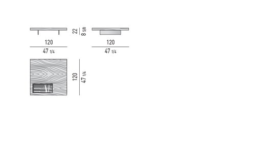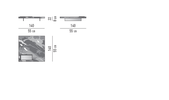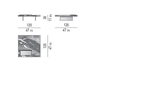 或者,Grigio Orobico大理石的顶部具有较低的金属托盘,带有金棕色饰面,就像腿一样。托盘的边缘从顶部伸出 15 毫米。