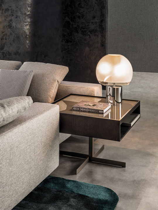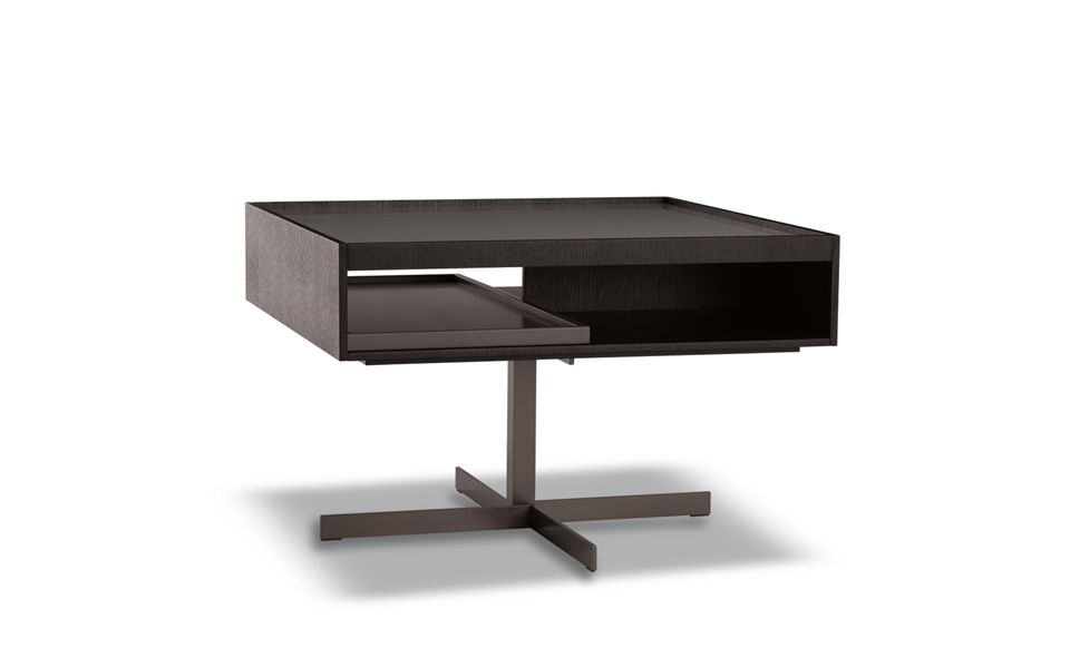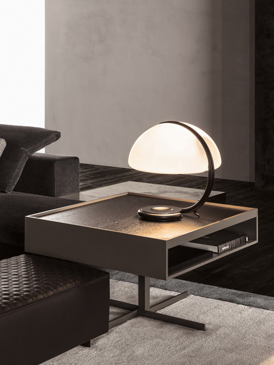 Close边桌完美地贴合了Yang沙发靠背之间的空间,提供了实用的表面:任何有用的物品都可以触及或整齐地存放在下面的隔间中,同时在沙发上舒适地放松。简单的金属底座以精致的缎面青铜色十字形地板底座结束。上部有一个带可拆卸托盘的隔间,可以在两侧进入,有两个版本:开放式孔摩卡漆橡木结构,光泽粘土色漆面顶部,内部托盘采用哑光粘土漆面,或带有哑光粘土漆框架和顶部以及橡木内部托盘,具有开孔Moka漆面。除了各种尺寸的边桌外,Close还包括一张控制台桌,一张桌子和一些床头柜。