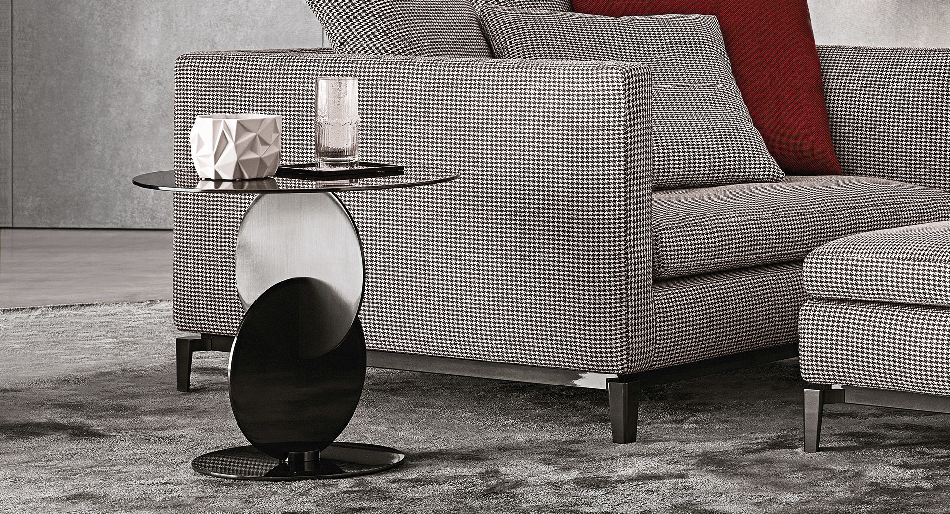 它看起来像是定制件,而不是批量生产的物品。精致的咖啡桌,带有激光切割的黑镍成品圆盘,通过交叉焊接组装而成。