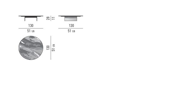 具有哑光黑色漆面的分层轴承结构具有薄铝制侧面,带有上漆的金棕色饰面和Grigio Orobico或Sahara Noir大理石,哑光聚酯饰面的顶部。