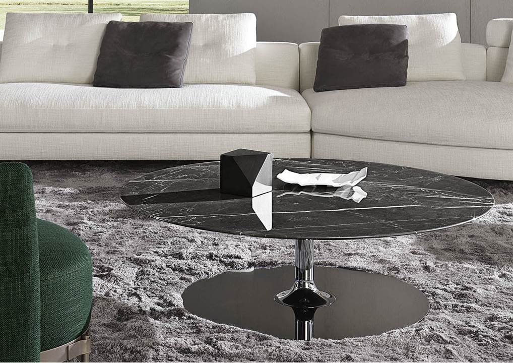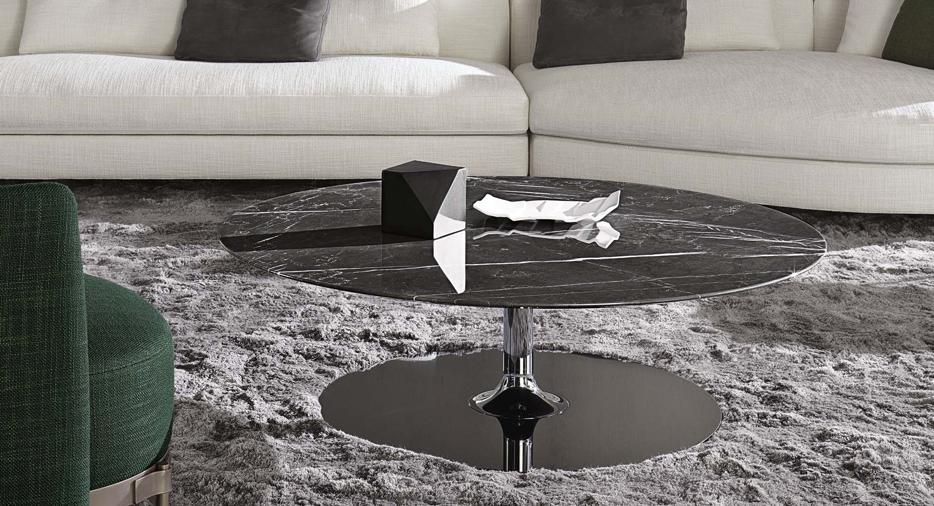 在休息室和边桌版本中构思,它具有卡拉卡塔或石灰色大理石的珍贵顶部。