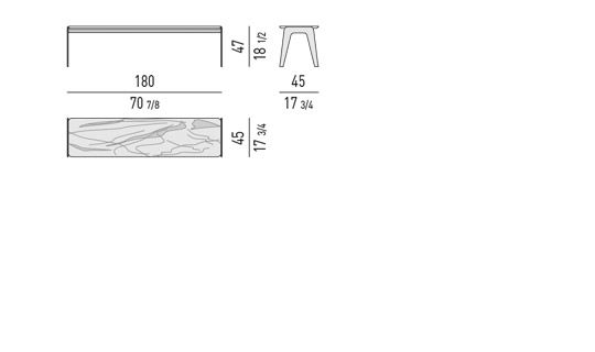 流线型金属支腿采用青铜漆面,可搭配亮漆砂或泥面、高光黑色透视玻璃或棕色大马士革大理石。