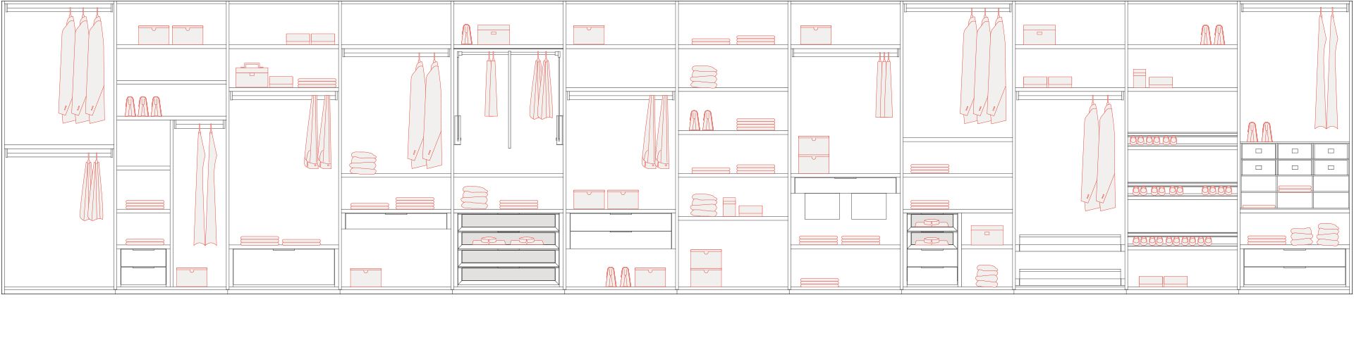 Open因其简洁的设计和开放式的收纳形式而备受瞩目。作为Lema模块化系统灵活性的终极体现,这件作品旨在为任何空间带来个性化的感觉。以其简洁的风格,明了的收纳系统,为当代家居生活提供理想的解决方案。在工程领域中,更是备受瞩目的完美产品,为全球多家酒店客房带来实用的收纳空间。衣柜可根据高度和深度进行定制,还可提供转角版,通过Armadio al-Centimetro系列的大量内部配置,根据个人喜好进行调整。