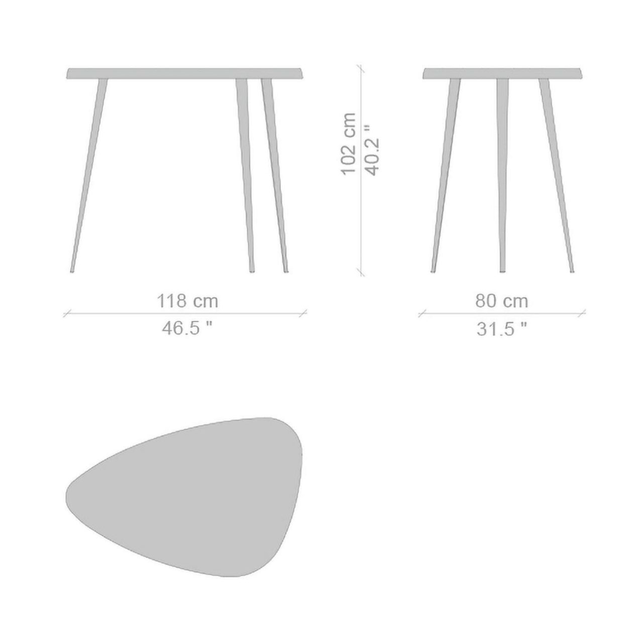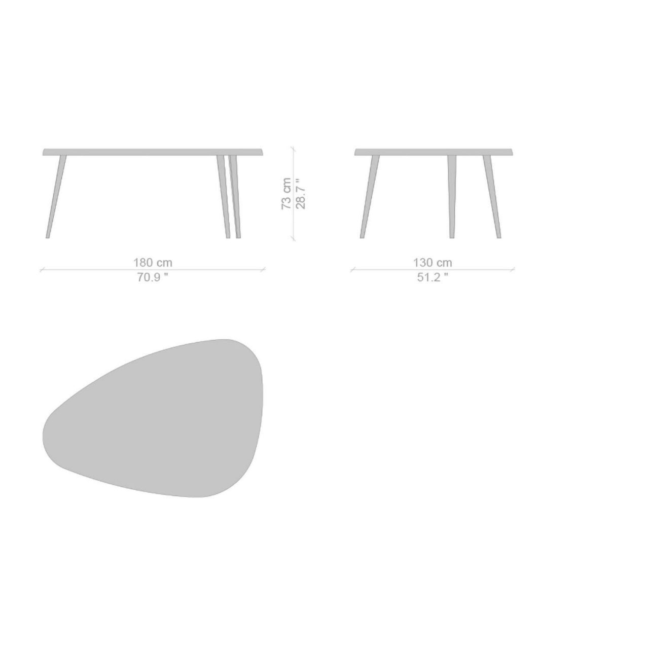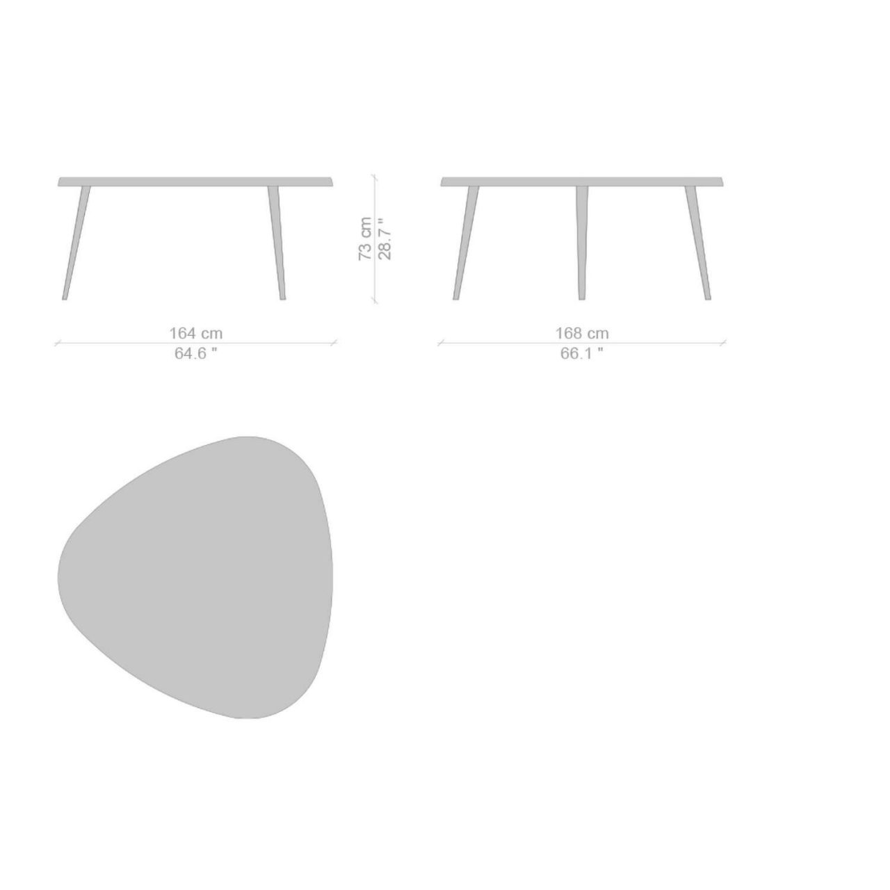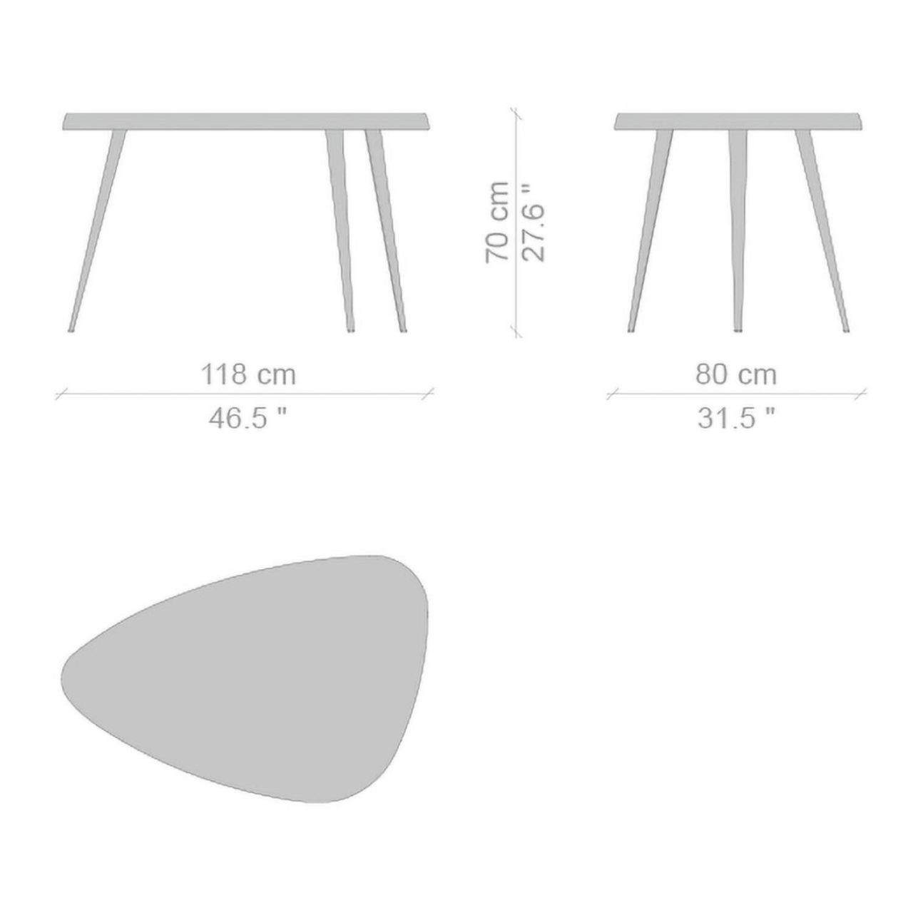 包括在 1938 年至 1939 年间开发的自由表格中,最终项目是在 1952 年为巴黎国际大学城的 Maison du Mexique 学生室构思的。设计占用尽可能少的空间的结构提供了将几块并排放置的可能性,以创建具有更宽和更规则形状的组合。1952年,作者用折叠金属板中的三角形截面腿代替了木腿。1956 年为巴黎的斯蒂芬·西蒙画廊制作了一个低版本。厚实的木质台面,有实木和亮面漆或哑光漆,传达出非凡的美感,而边缘则展现出与手的形状和大小相适应的轮廓。2018 年,增加了两种新的用餐方式,可让您容纳 5 或 6 位用餐者。还引入了新的饰面,进一步增加了桌子的可组合性和功能性。