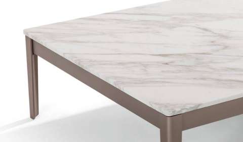 作为 Bouroullec 兄弟创建的 Cotone 系列的一部分,这款设计咖啡桌配有一个与沙发相同饰面的薄底座和一个由多种大理石制成的方形台面,带有哑光饰面。
