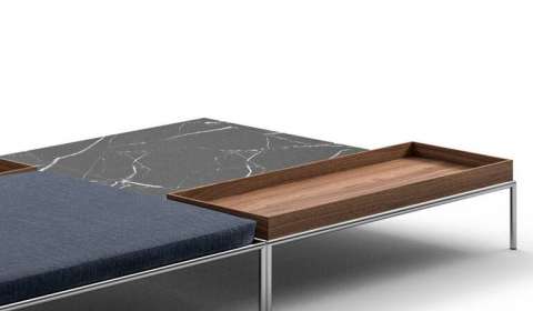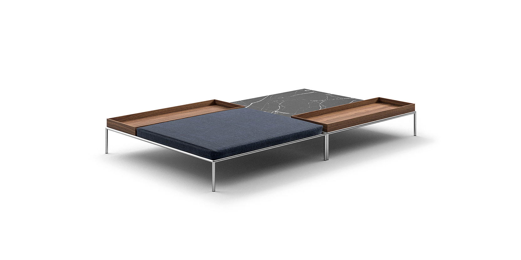 完善 Mex-Hi 系统的设计坐垫凳/咖啡桌是一种多功能元素,由于其模块化,适用于现代家具的多个空间和配置。