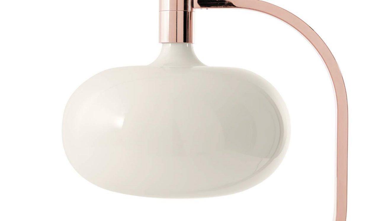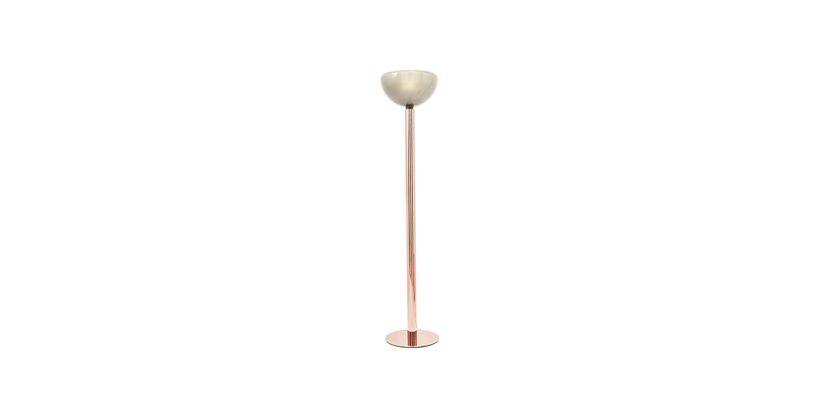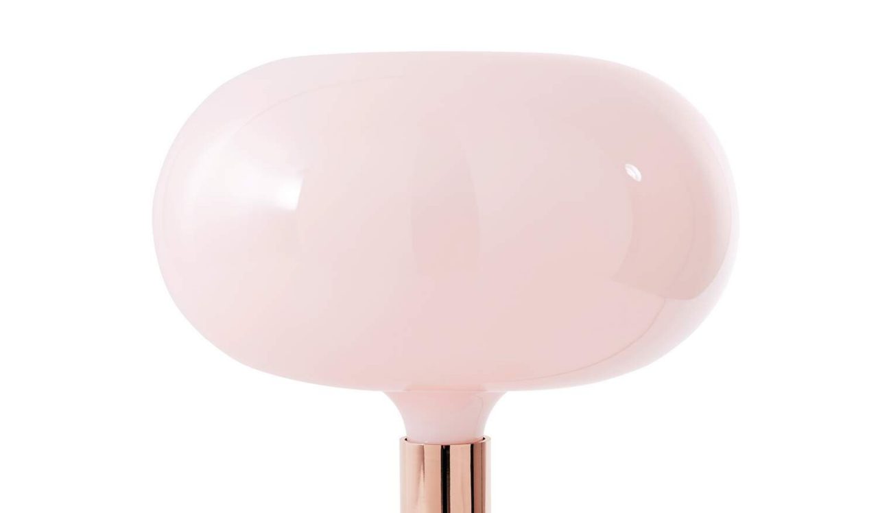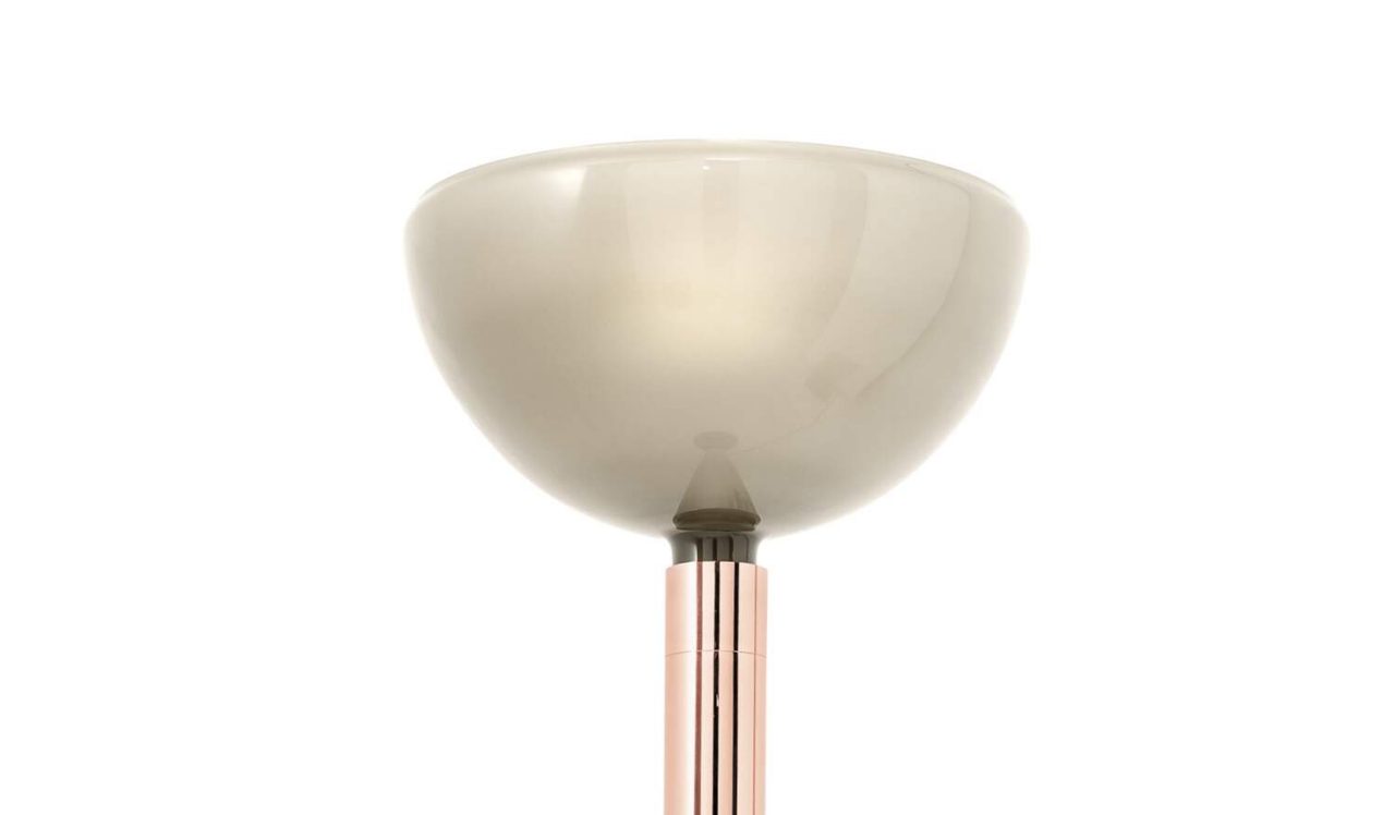 台灯采用 Cassina 专属饰面,采用玫瑰金结构,杯形灯罩采用鸽灰色玻璃制成。由于位于电源线上的调光器,光线是漫射的,强度可调节。