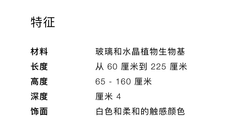 也可以订购带 Cristalplant Biobased 框架的镜子,最大尺寸为 1.5 平方米。提供白色和柔软触感的颜色范围。