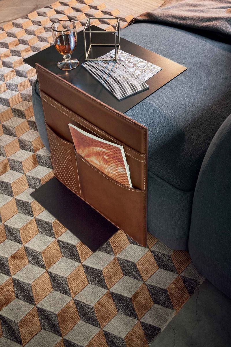 “C”形的边桌NOTE是由其基本的,理性主义的建筑和优雅的结合青铜色金属和天然皮革组成。在这个模型中,形式上由三个简单的表面与特定功能的成功结合组成,美学和功能相辅相成。中间的一个完全用皮革缝制而成,有一个宽敞的储物袋:最大的一个用来装钢笔、笔记本、杂志和书籍;较小的一个用来存放遥控器和电子设备。注是一种真正的小型多功能家具,用途广泛,易于调节。