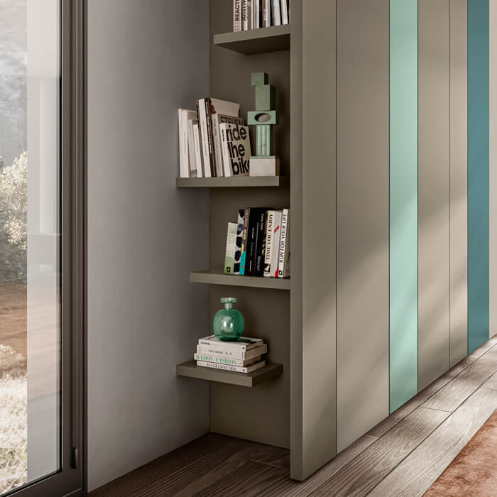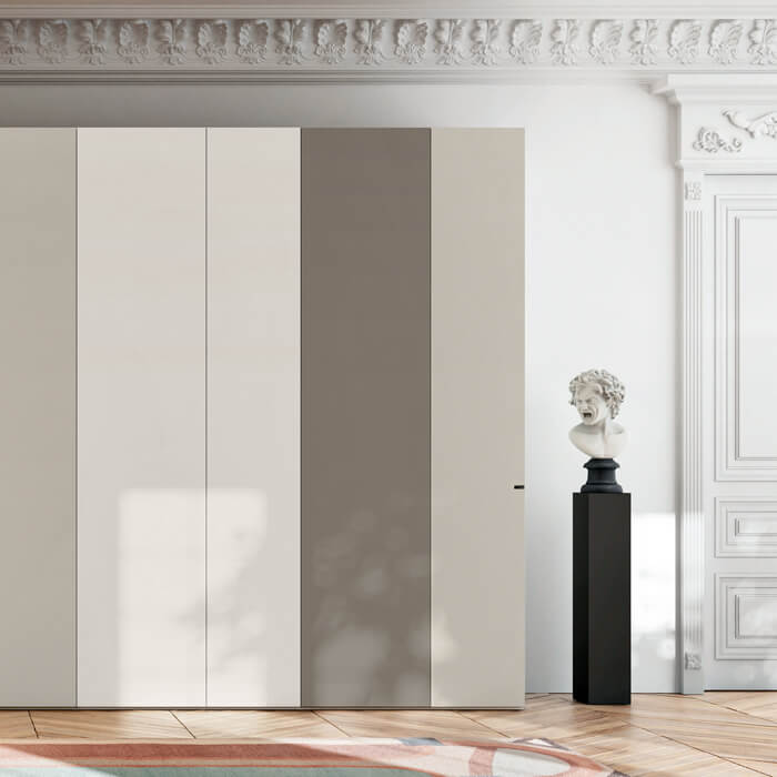 Smart 是多功能的原创卧室衣柜,可以悬挂或放置在地面上。它以定制漆面或三聚氰胺表带的无限可能性以及没有把手的创新推拉式开口系统而著称。