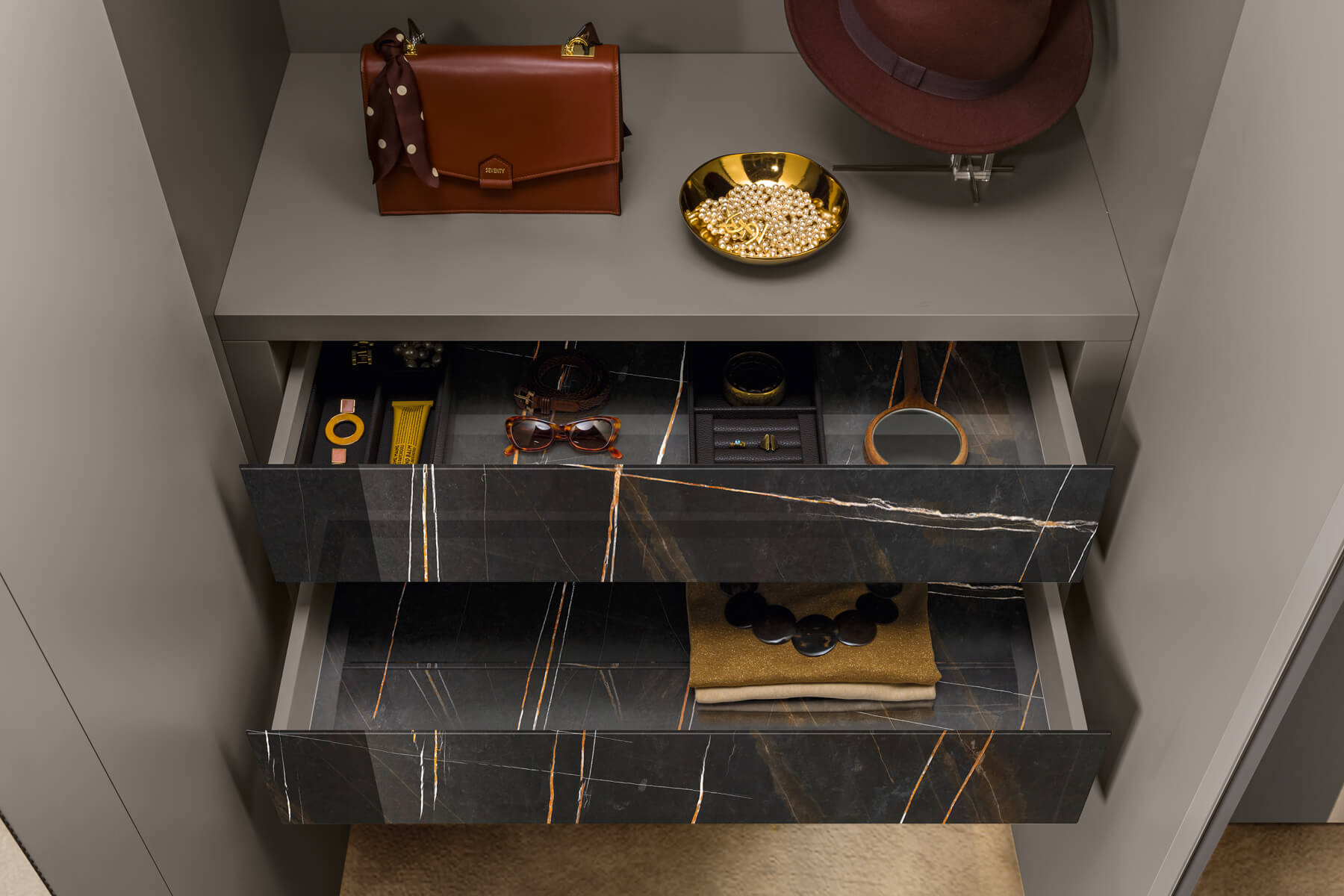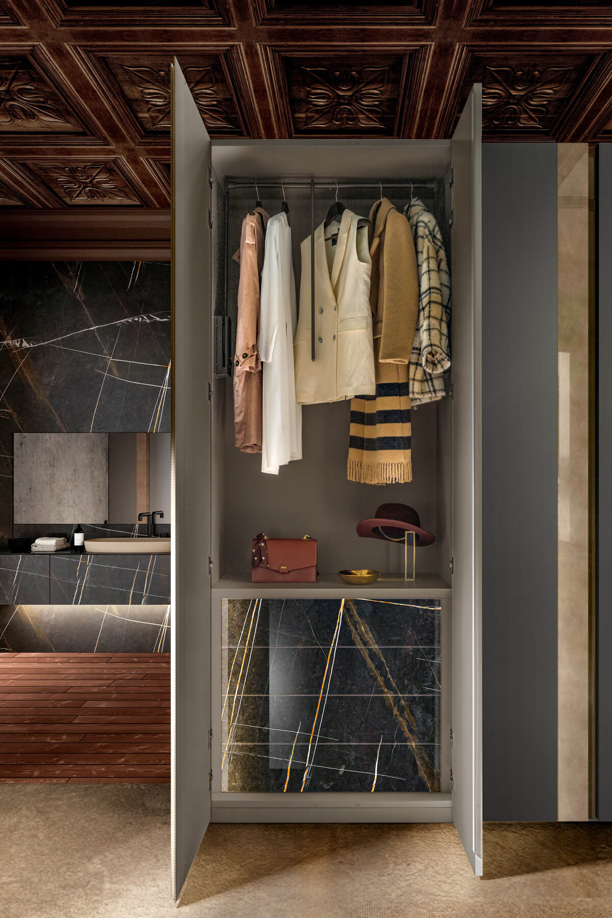 Groove 衣柜的标志在于它的全高把手似乎已经雕刻在玻璃上,以达到完美的人体工程学。事实上,开幕式是优雅、实用和直接的。由于采用 XGlass 技术,可定制的不同材料使其适用于不同的室内设计,无论是经典还是现代,都能以令人惊讶的设计实现多功能的最终效果。