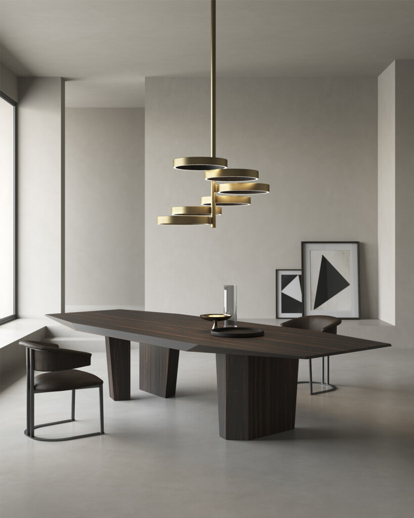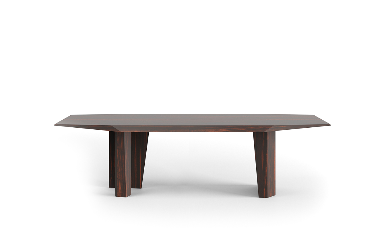 永恒的形状,带有动态刻面,适用于完全由木材制成的一系列桌子。