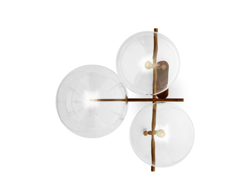 带有手工抛光黄铜结构的壁灯或吸顶灯,带有 3 个透明吹制水晶球。包括灯泡 (LED)。