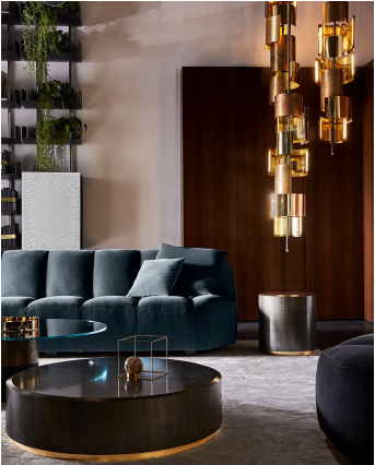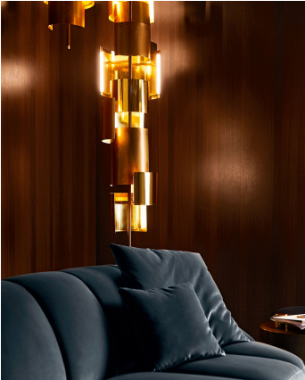 不可调光 LED 吊灯,采用古铜色黑漆结构和抛光、缎面、手工抛光和黑色镀铬黄铜带。