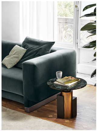 咖啡桌采用 Verde Alpi、Calacatta Vagli Oro 或 Nero Marquinia 大理石制成。手工抛光黄铜结构和开孔黑漆木部件。