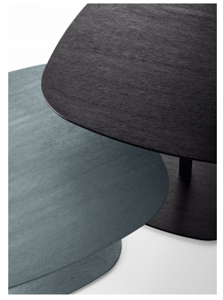 咖啡桌采用黑色、钛金属或金色手工拉丝铝制顶部和结构。