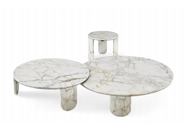 拉丝 Ceppo di Grè 咖啡桌,带有手工抛光金属细节。还提供天然抛光 Calacatta Vagli Oro、Bianco Carrara 大理石或拉丝 Fior di Pesco 大理石。