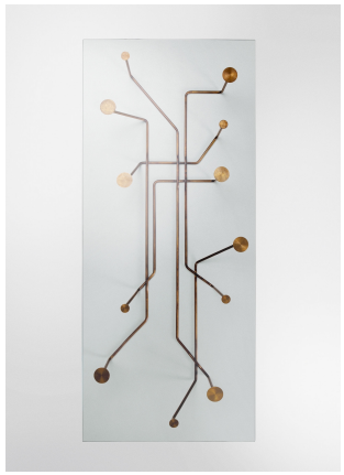 超轻钢化玻璃咖啡桌。手工抛光黄铜结构。黄铜自然染色且不均匀。这种工艺赋予每件作品独特的独特性,使其独一无二。