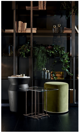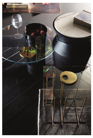 开孔黑漆实木咖啡桌。顶部“grigio Italia”镜子。也可提供“Antique 1”镜子或 Calacatta Vagli Oro 大理石或 Verde Alpi 大理石。