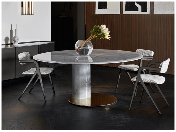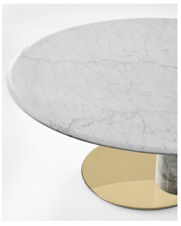 桌面和底座采用天然光泽白色卡拉拉大理石或亚光抛光 Nero Marquinia 大理石版本。受保护的镀黄铜不锈钢接地板。根据要求,可旋转大理石台面作为支撑。