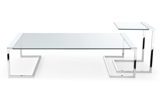 咖啡桌采用 10 毫米钢化透明或“grigio Italia”玻璃桌面。镀铬黄铜结构。根据要求抛光或缎面黄铜。