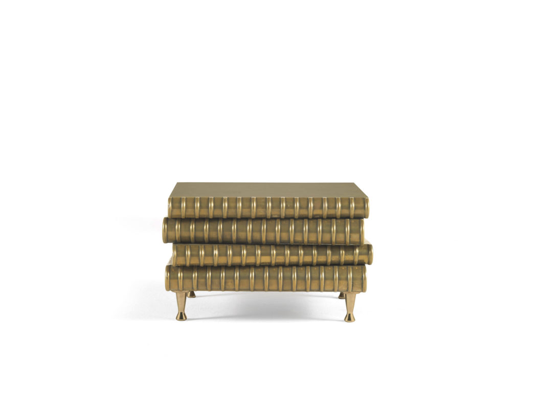 边桌,木质结构,深青铜饰面。亮黄铜支腿。
