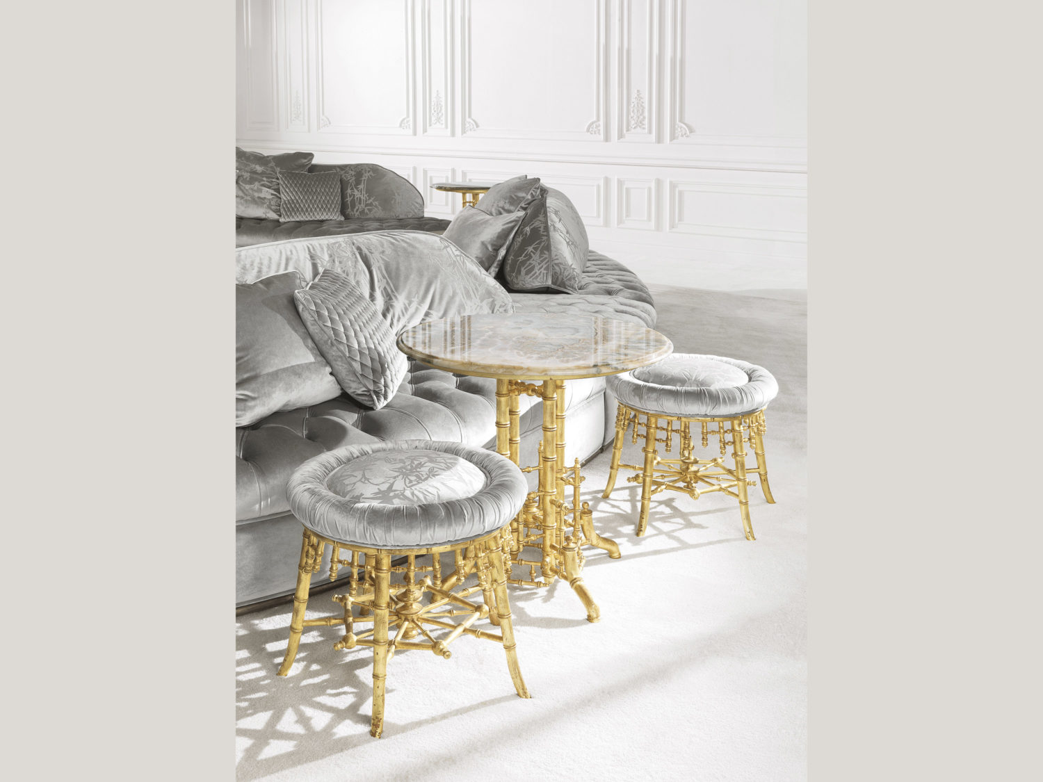 边桌采用实心山毛榉木结构,饰有古色古香的金色饰面。在浑浊的玛瑙中顶部。