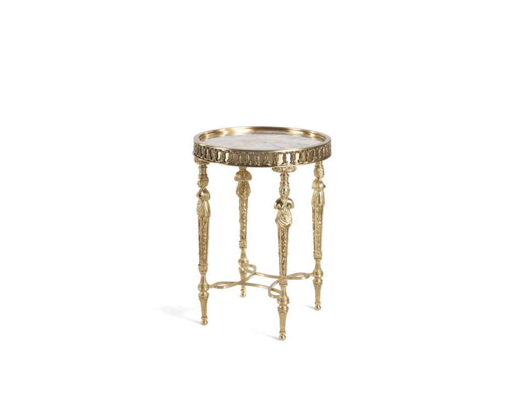 边桌采用失蜡铸造黄铜结构。在浑浊的玛瑙中顶部。