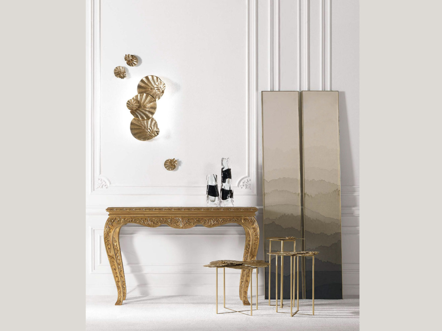 手工凿铸黄铜壁灯。