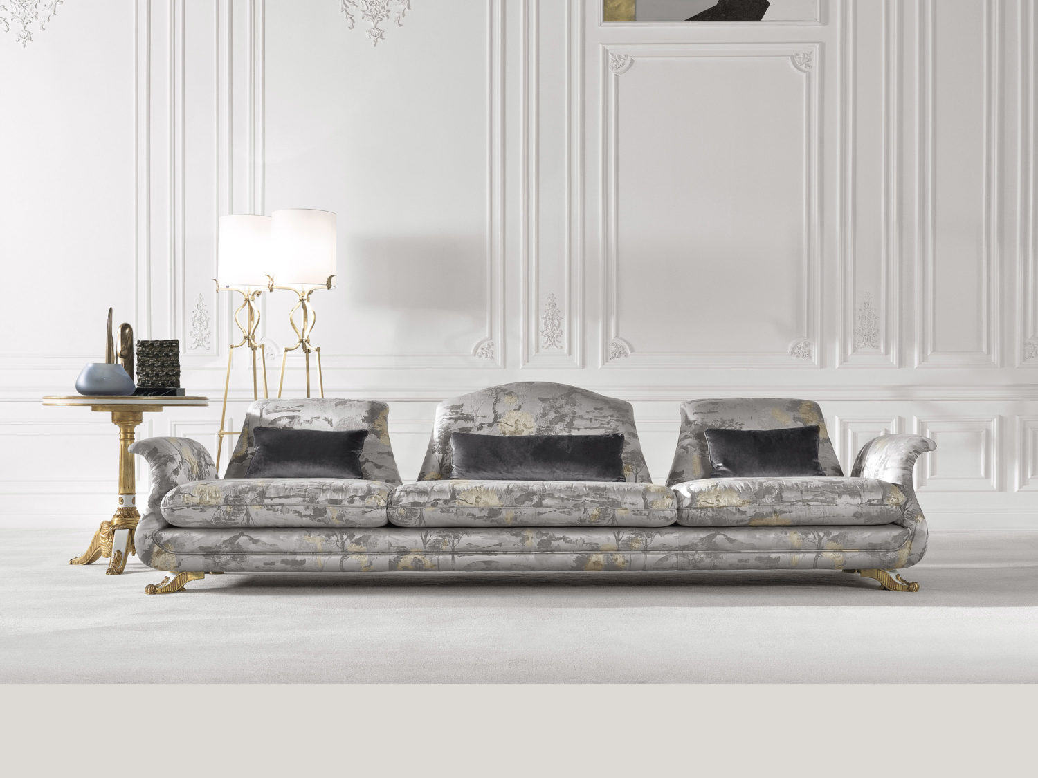 落地灯,黄铜结构,哑光饰面。缎布遮阳。