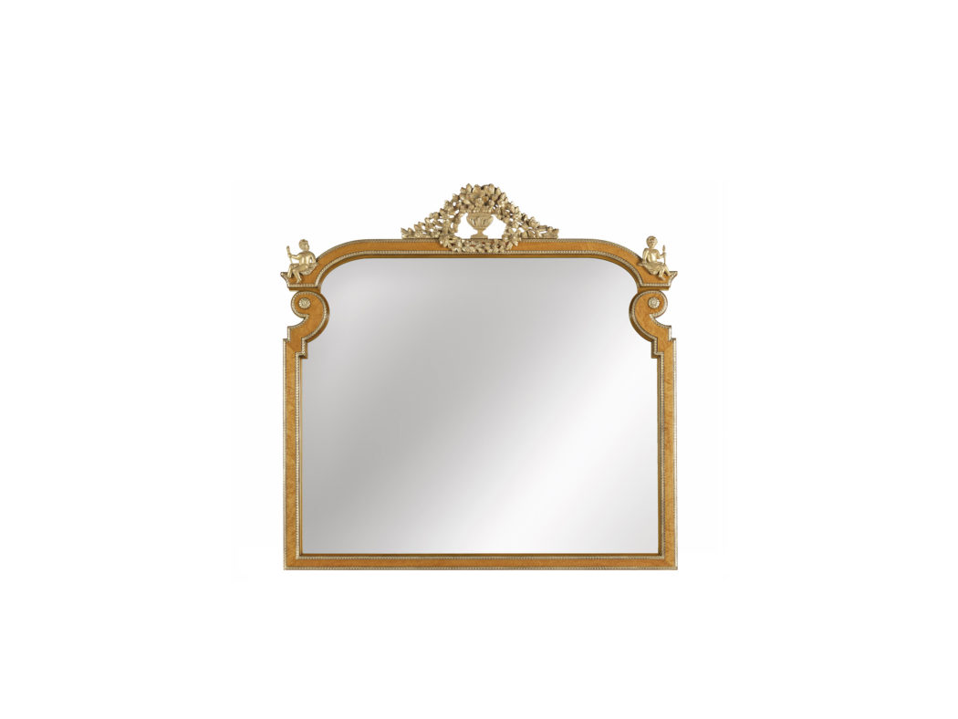 镜子与框架在多层可率的鸟眼枫木。手工雕刻细节,古色古香的金色饰面。天然镜子。