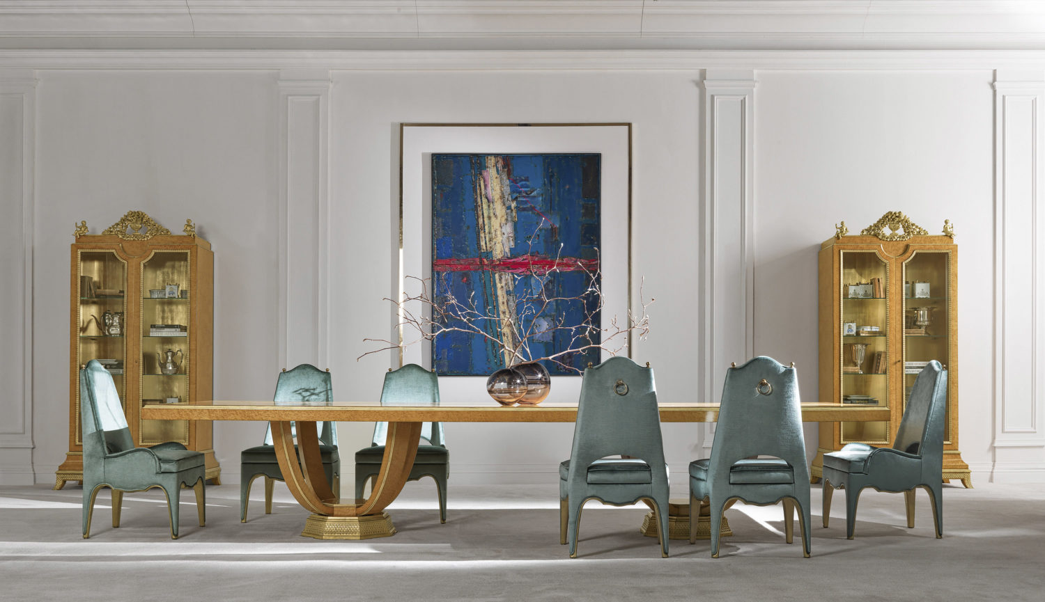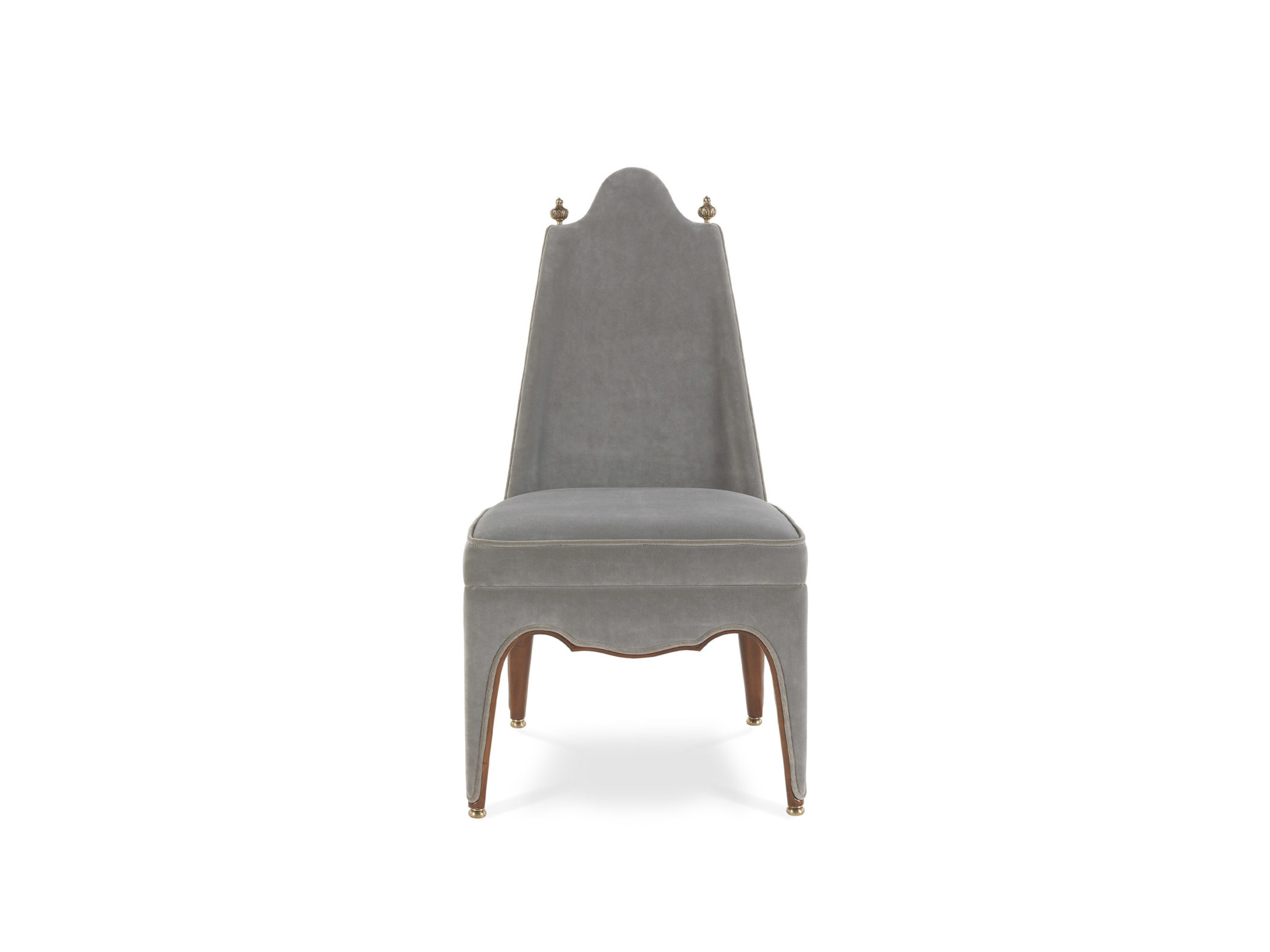 椅子与山毛榉木结构完成在光泽胡桃木完成。泡沫填充。天鹅绒内饰。细节在古董黄铜。还提供古色古香的金色饰面。