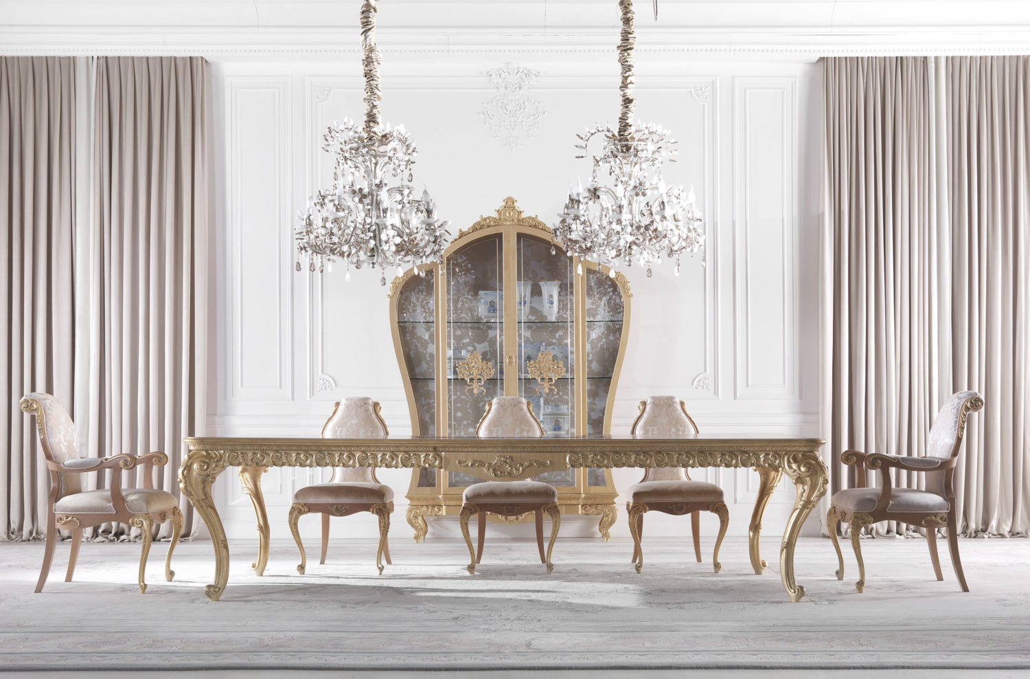 椅子结构采用手工雕刻的山毛榉木,浅橡木和金色饰面。泡沫填充。织物内饰。