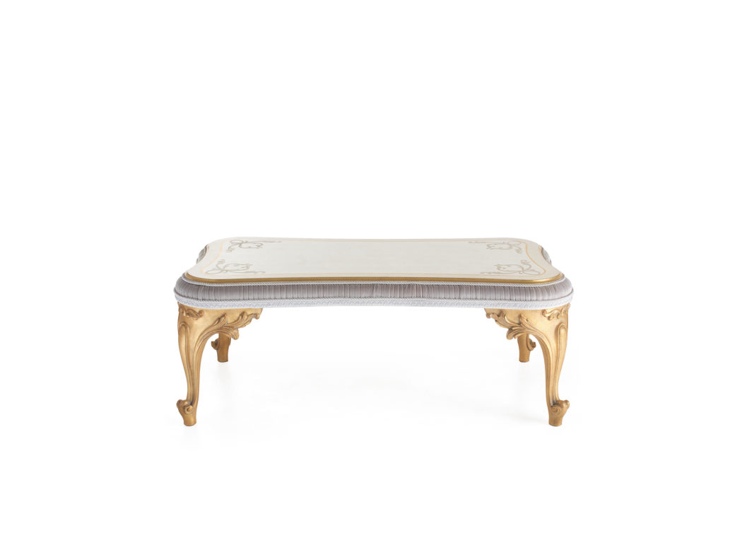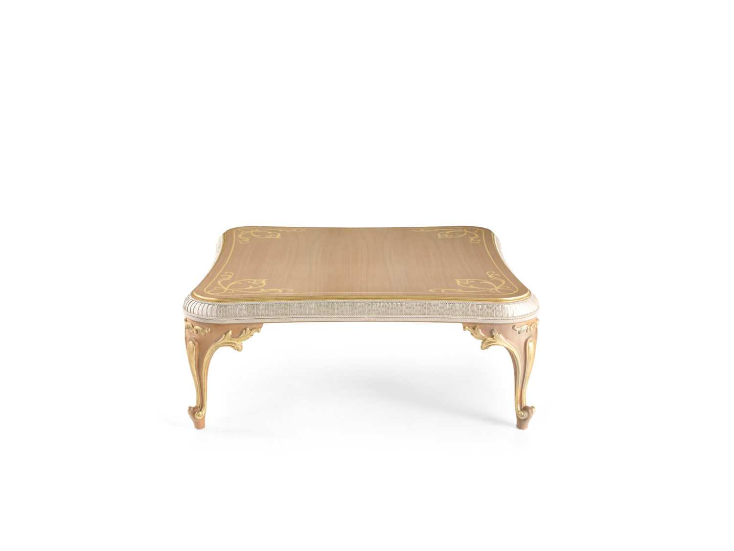 中央桌子采用山毛榉木结构,带有法国象牙和金色饰面。织物带。顶部有石膏装饰。还提供浅橡木和金色饰面,顶部饰有金箔装饰。