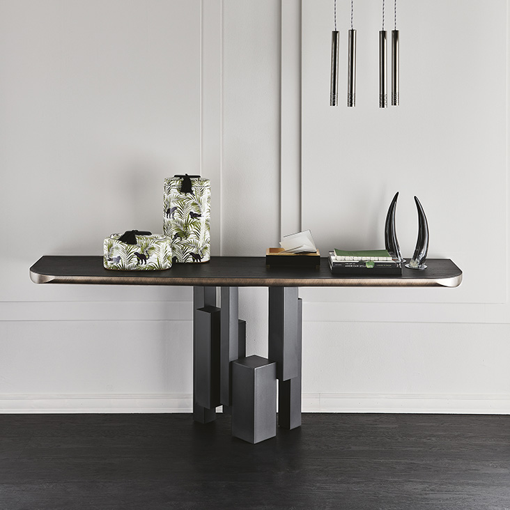Skyline控制台桌系列的灵感来自大都会建筑,它们用细长的线条和三维体积装饰地平线。涂漆钢底座从不同角度反射光线,创造出根据环境照明而变化的对比效果。陶瓷或木制桌面采用优质材料和精心挑选的细节制成。Skyline 木制控制台桌具有不规则的边缘,而 Skyline Wood-C 型号具有涂漆和圆形的下部轮廓,美化了这款入口控制台桌。Skyline Keramik Premium精致而现代的控制台桌由精美的陶瓷台面和圆形下部轮廓增强。