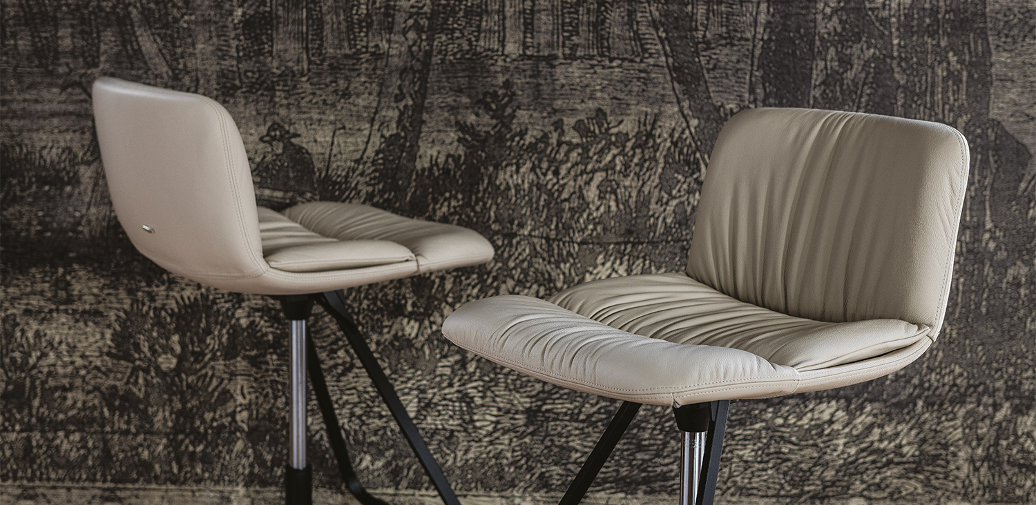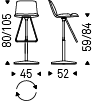 超轻旋转凳子,高度可调节,带 4 根抛光铝和立柱底座,镀铬钢 (08) 脚凳和气体活塞,或黑色 (GFM73) 或钛 (GFM11) 压花漆钢和气体底板、立柱和脚凳镀铬钢活塞 (08)。框架覆盖织物、合成牛巴革、合成皮革或根据样品卡的软皮革。