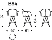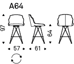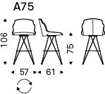 带或不带扶手的旋转凳,带石墨 (GFM69)、白色 (GFM71) 或黑色 (GFM73) 压花漆钢框架。座椅和靠背采用织物、合成正绒面革、微型正绒面革、合成皮革或软皮革作为样品卡软垫。盖子不可拆卸。