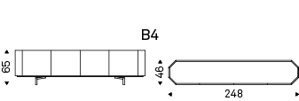 哑光白漆 (OP7) 或钛 (M11) 木餐具柜。顶部采用超透明白色或青铜镜面玻璃。内部透明玻璃搁板。B 型带镀铬 (08) 钢底座或哑光石墨 (OP69) 或白色 (OP71) 涂漆。