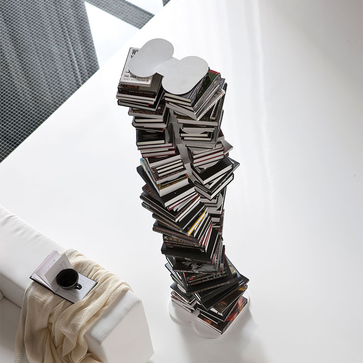 书柜有 13 个白色 (OP71)、黑色 (OP17) 涂漆或钛 (GFM11) 压纹钢架子。