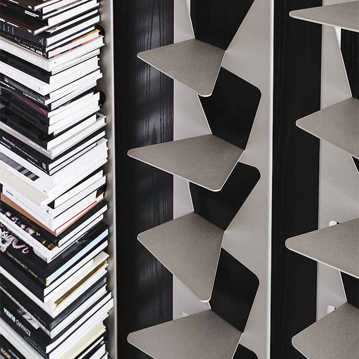 钛 (GFM11) 或青铜 (GFM18) 压纹漆钢书柜。墙锚是必要的。