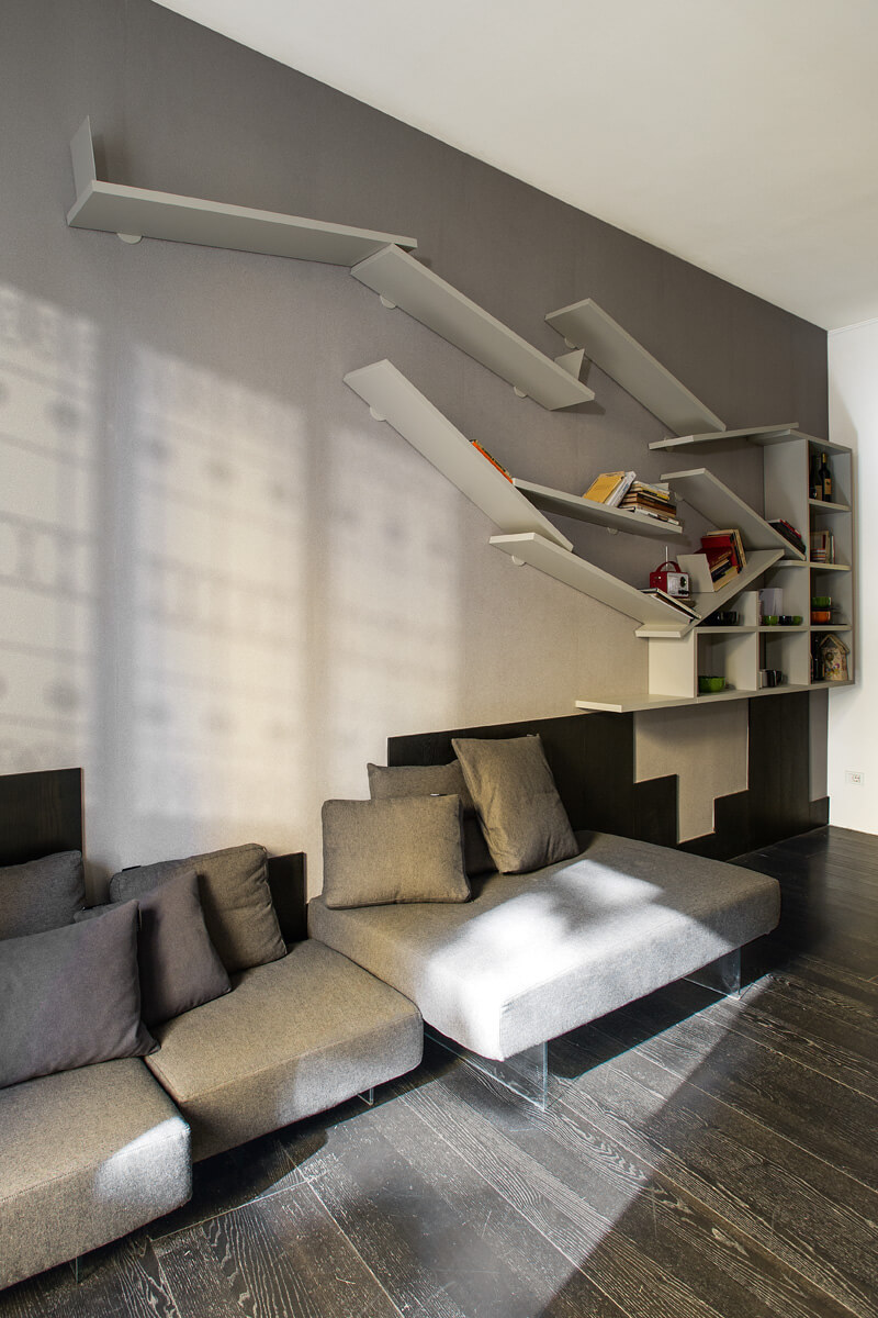 一个现代的、被破坏的客厅图书馆。 DiagoLinea 书柜的诞生源于对创造动态家具的渴望,这是一种能够满足使用它的人的愿望的漆架系统,因此知道如何随着时间的推移而发展。这个书柜诞生于 LagoLinea 系统及其几何规则,赋予现代解构式书柜生命,其中书架相互支撑,呈现出意想不到的抵抗重力的倾斜。
