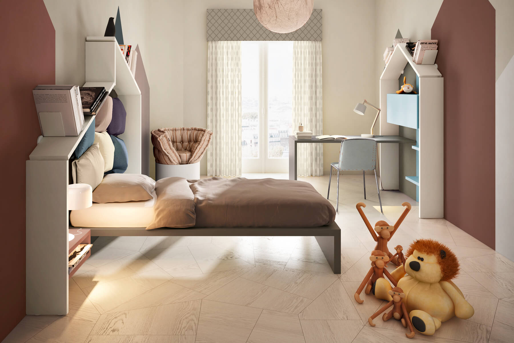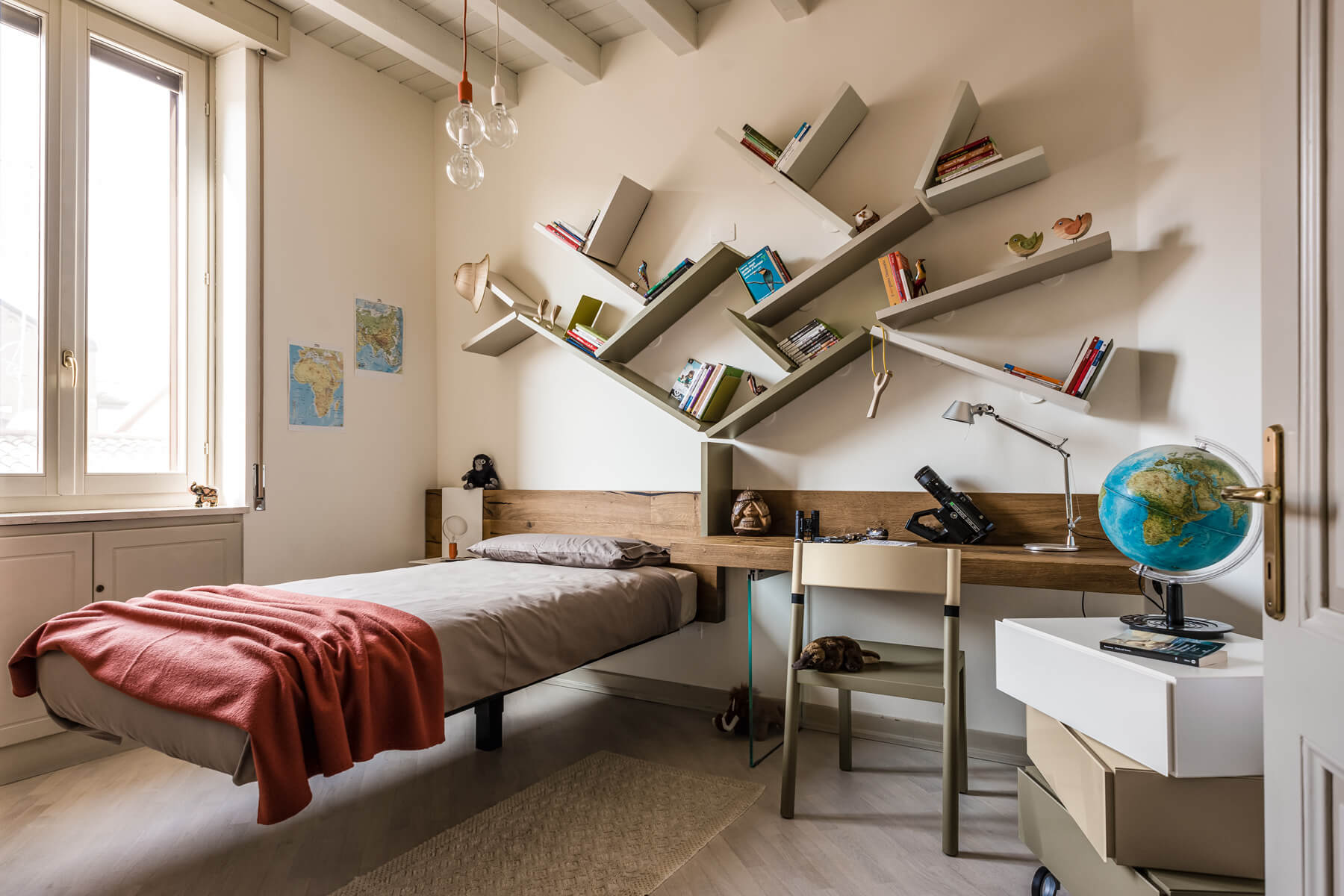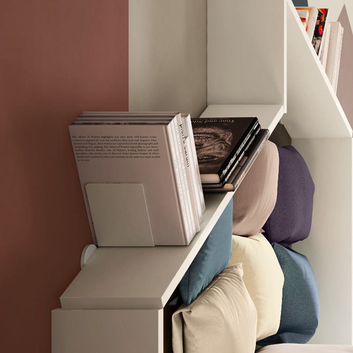卧室的原始图书馆。 在每间儿童卧室中,您都必须能够用您的想象力做梦:DiagoLinea 卧室图书馆是一件家具,通过相互支撑、无视重力的涂漆搁板系统创造出新的和意想不到的形状。 DiagoLinea 是一条可以赋予您想要的形状的系列,它成为一件能够随着时间推移而改变和进化的家具:一个每天都可以被发现和改造的书柜。