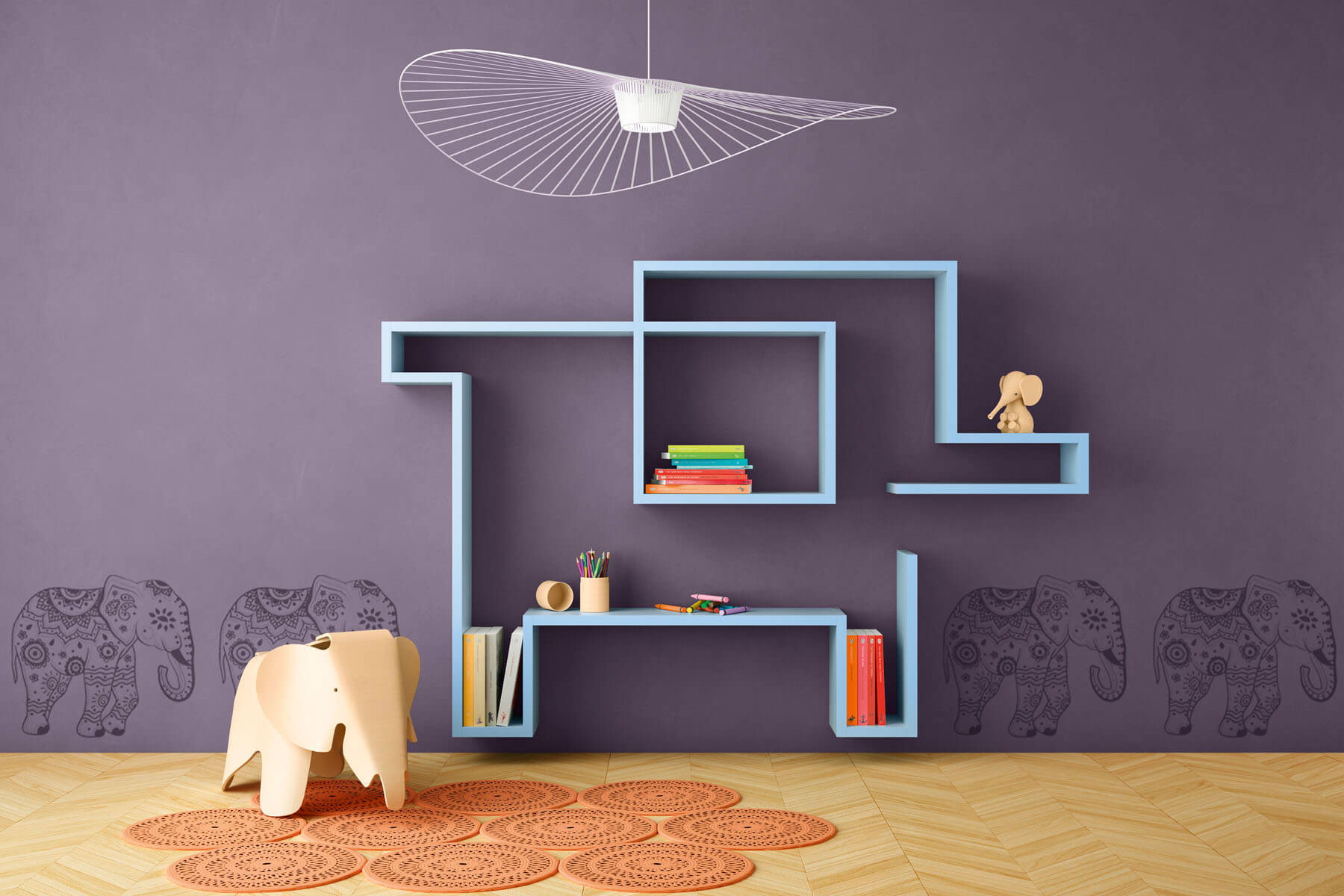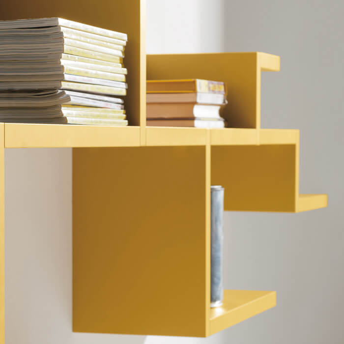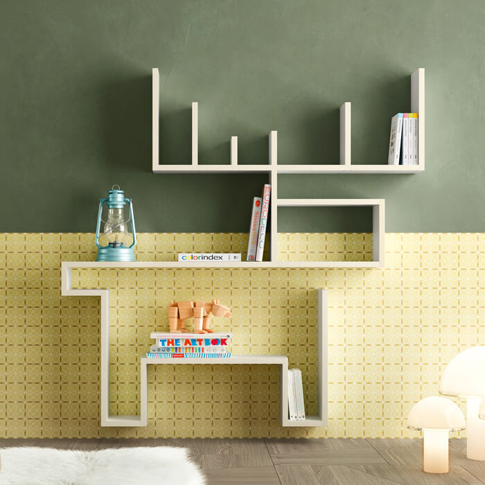 在儿童和青少年的卧室里,LagoLinea 书柜设计了创意和原创的作品,没有任何结构限制,变成动物、树木或任何你想要的形状。一条 30 毫米厚的单线,涂有 32 种 LAGO 颜色,以简单的手势讲述和包含,就像在纸上画笔一样,将自己以多功能性插入空间。