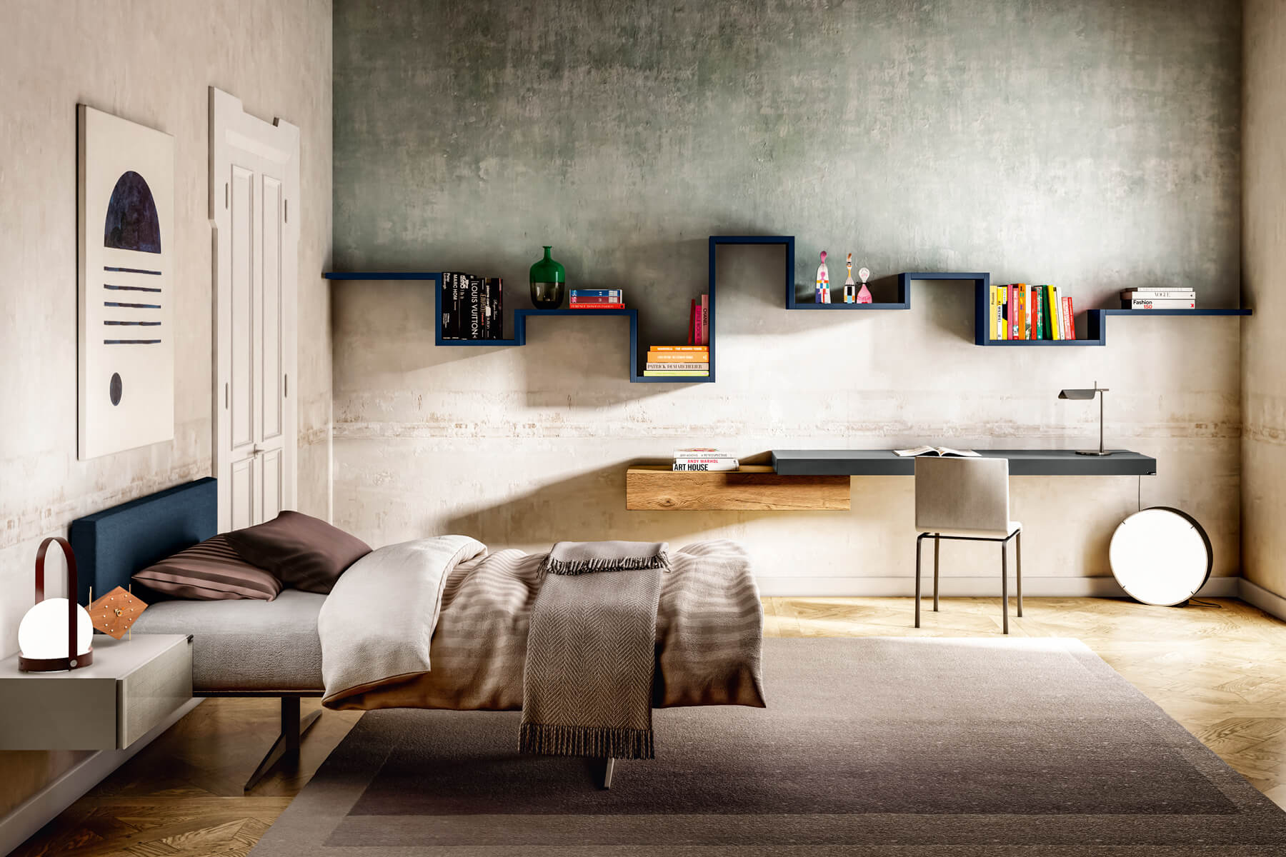 LagoLinea 是一个系统,既可以制作书柜,也可以制作由简单线条设计的书桌和床:轻盈的形状旨在为儿童和青少年的卧室提供独特和个性化的表达语言。